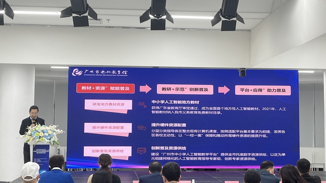 广州市电教馆副馆长方昆阳介绍,2018年,广州启动编写地方人工智能教材;2019年,遴选出荔湾、天河、黄埔等3个市人工智能课程改革实验区和147所实验校。2022年9月,广州启动面向全市中小学校覆盖130万学生的人工智能教育普及工作,为培养高素质、创新型、复合型人才奠定基础。