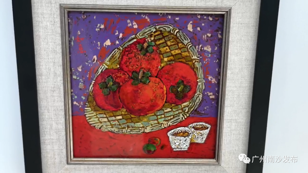 汤艺萍表示,农民漆画以大漆为原料,可加入蛋壳、贝壳、木屑、木炭、塑料纸等材料进行装饰,所以说漆的材料是“千文万华”,各种材料都可以用到漆画当中。