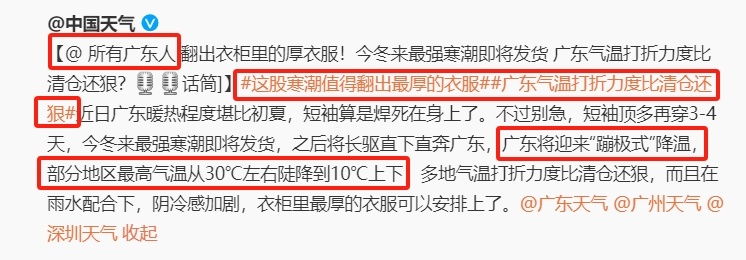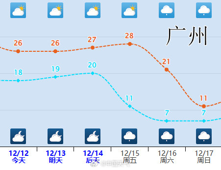 不要被阳光普照麻痹了,留给大家准备的时间不多了。16日广州将迎三年来12月最强气温跳水,预计气温21-10℃。