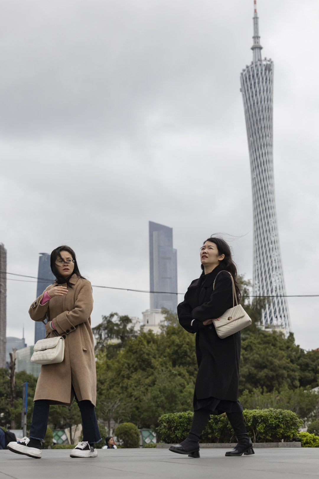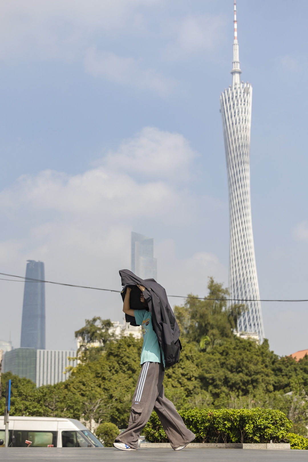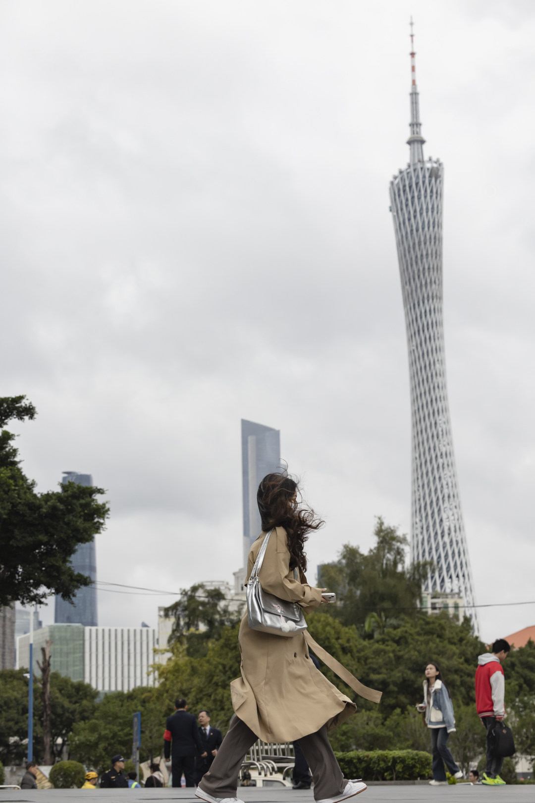 14日,早上的丽影广场下了点小雨,广州塔披上了一层薄纱;天气预告,16日寒潮将至,广州将直降10℃+。