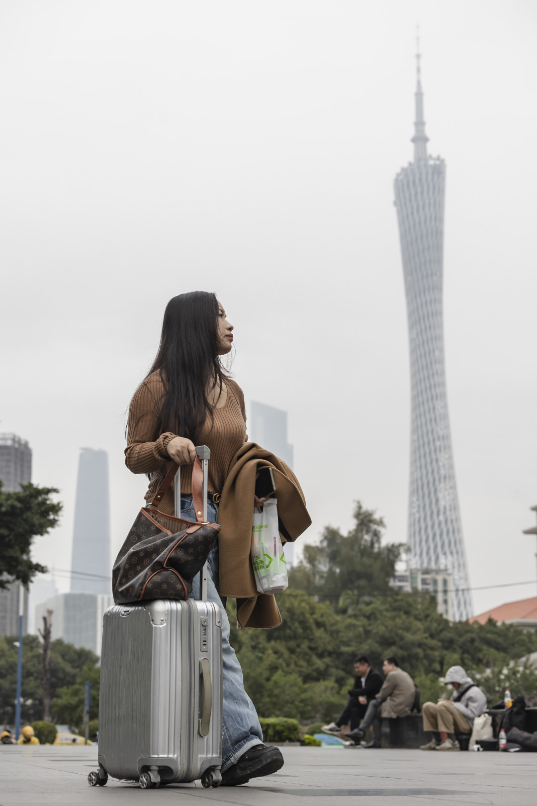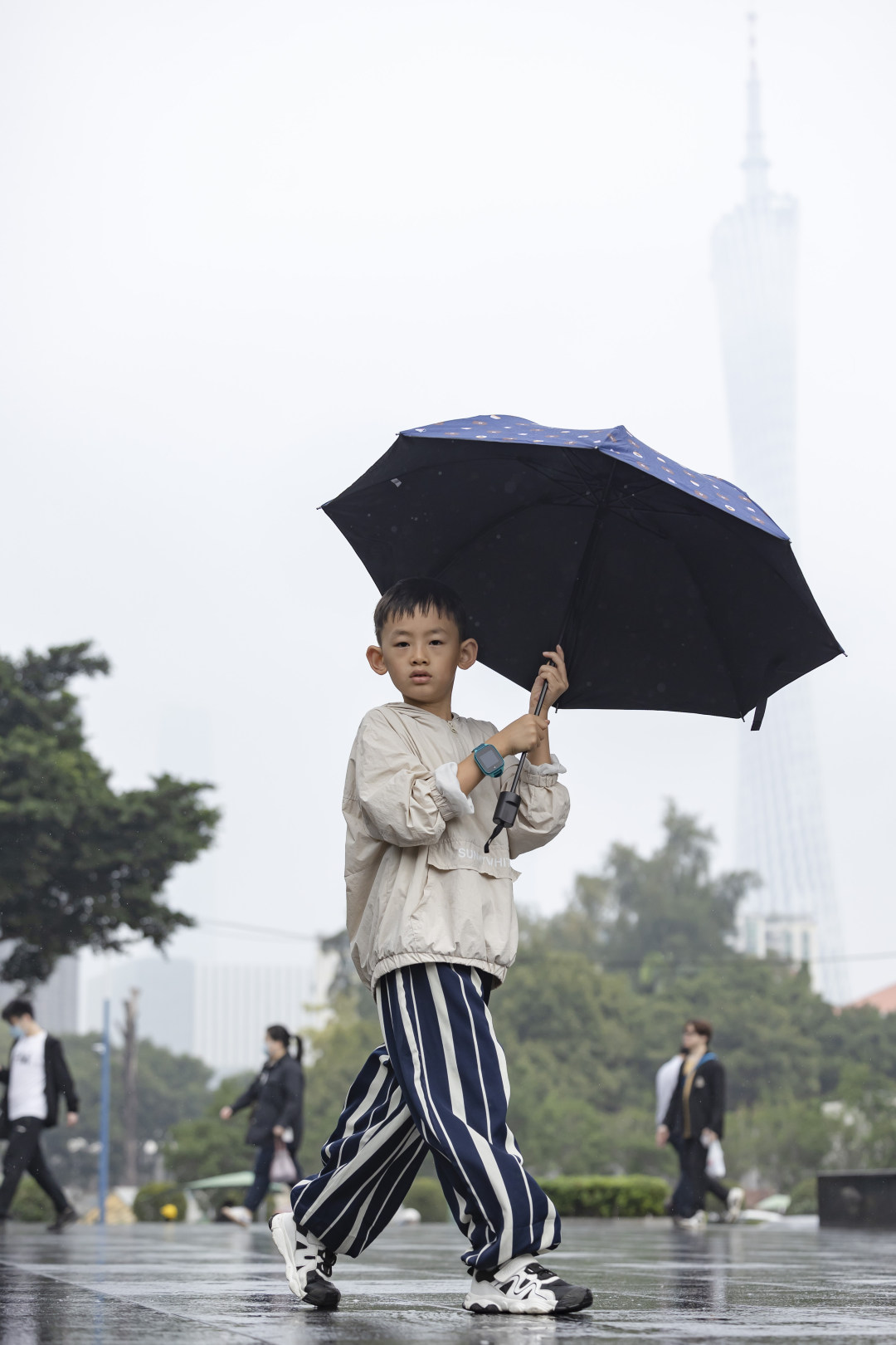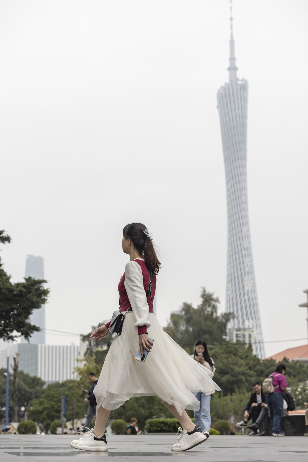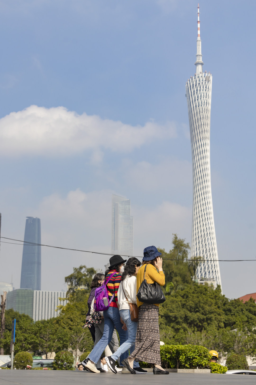 14日,早上的丽影广场下了点小雨,广州塔披上了一层薄纱;天气预告,16日寒潮将至,广州将直降10℃+。