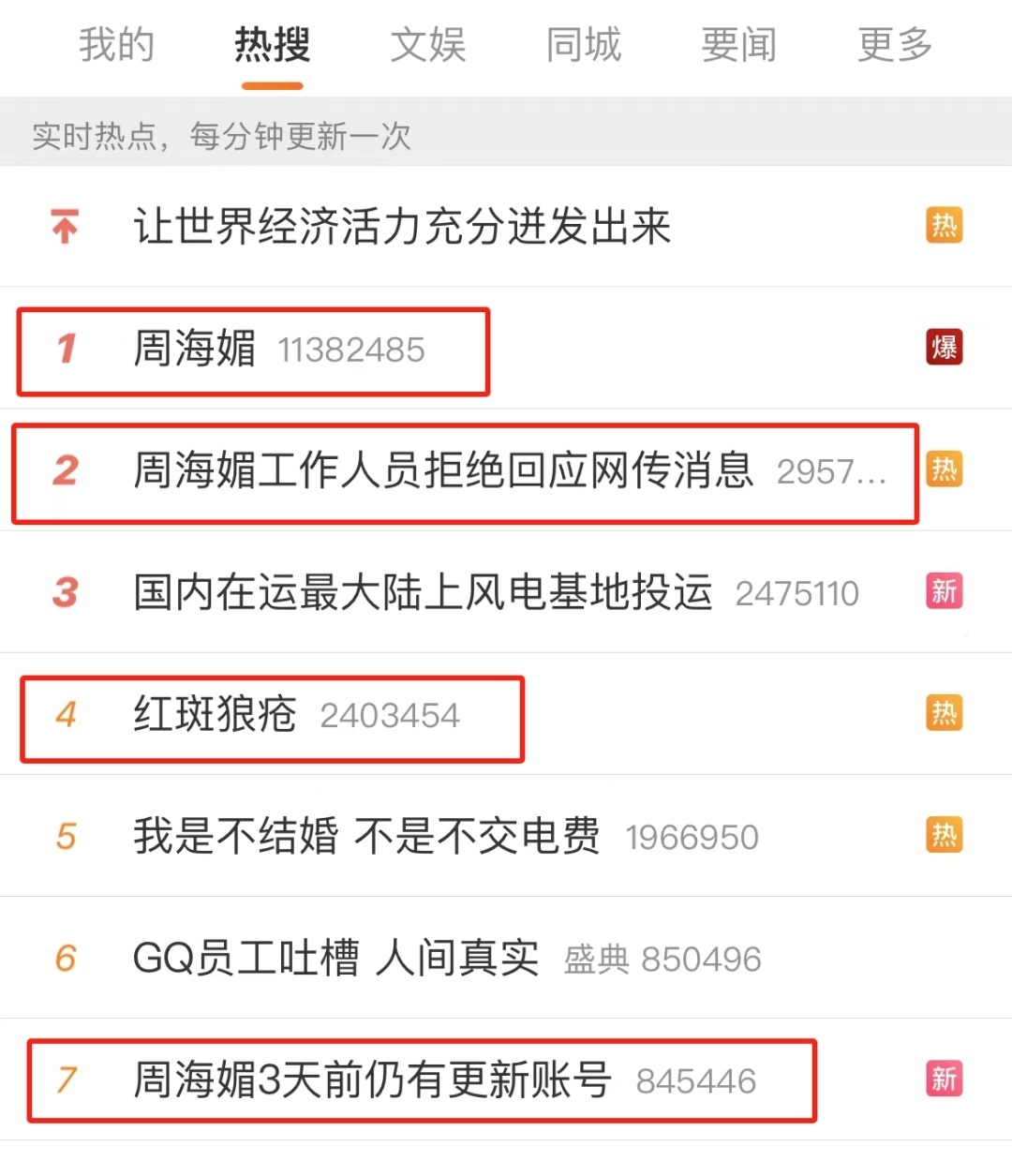 同上热搜的还有“红斑狼疮”。自多年前网上就有“周海媚身体状况欠佳、患有红斑狼疮 ”和“担心遗传下一代,因而没有婚育 ”等说法,但未被其本人证实。