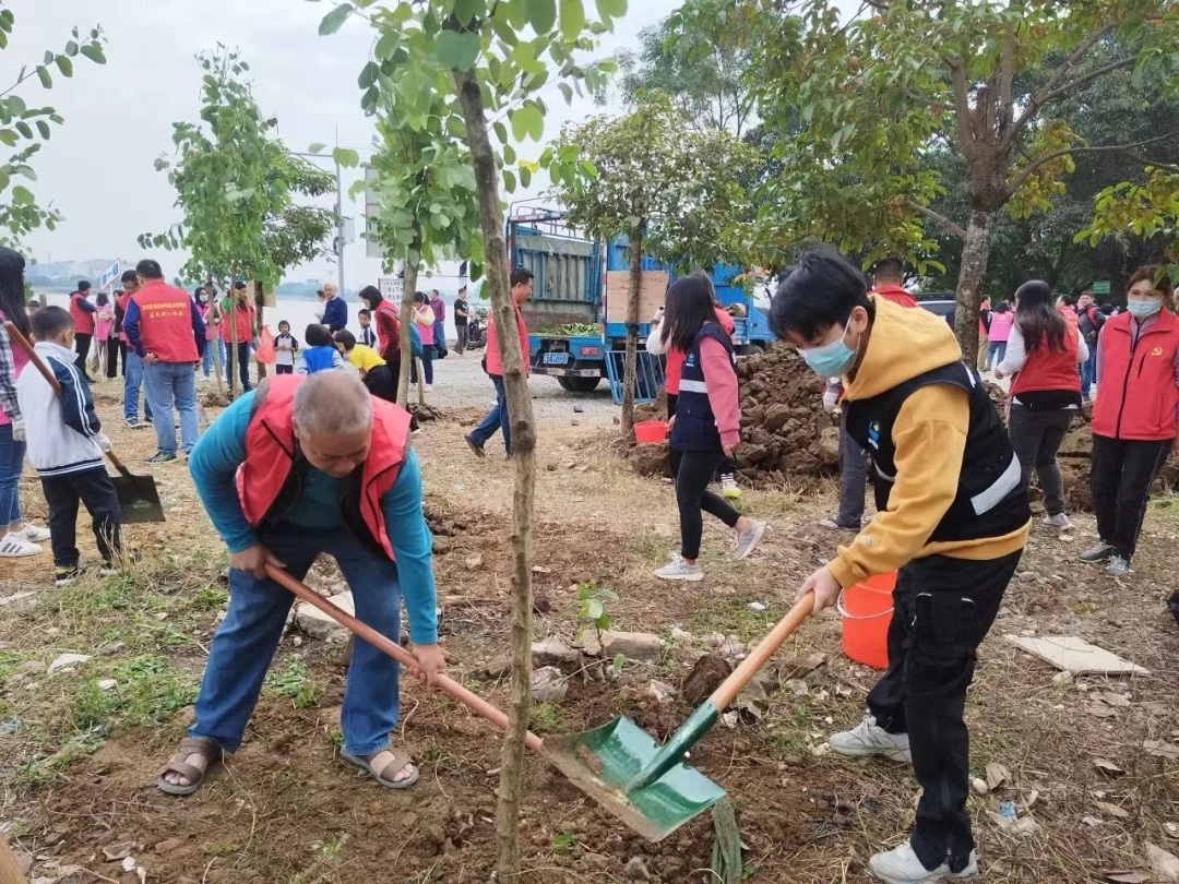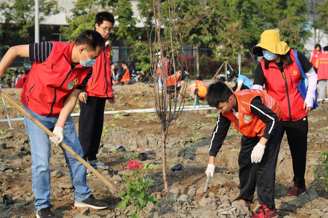 ▲小黄圃社区党员志愿者积极行动美化家园