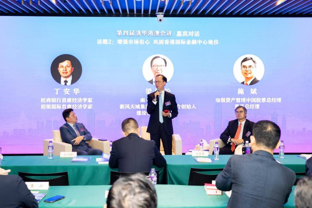 第二组对话的主题为“增强市场信心 巩固香港国际金融中心地位”。招商银行首席经济学家、招银国际首席经济学家丁安华(兼主持),南丰集团董事长、新风天域集团董事长兼联合创始人、建设银行独立董事梁锦松,瑞银资产管理中国股票总经理、董事总经理施斌参与对话。围绕香港如何实现国际金融中心的升级演化,丰富离岸金融服务、推动人民币跨境融资等方面的新思路,以及如何在国家发展全局中寻找新机遇、实现新发展等问题展开对话。