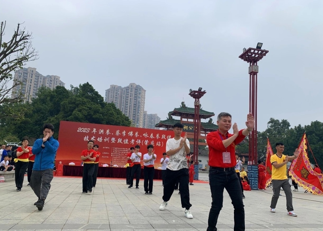 洪拳、蔡李佛拳、咏春……文化园内比技艺!12月9日,广东省武术协会洪拳专业委员会、广东省武术协会蔡李佛拳专业委员会、广东省武术协会咏春拳专业委员会联合主办的“2023 年洪拳、蔡李佛拳、咏春拳段位技术培训暨段位考评”活动在肇庆市包公文化园举行。