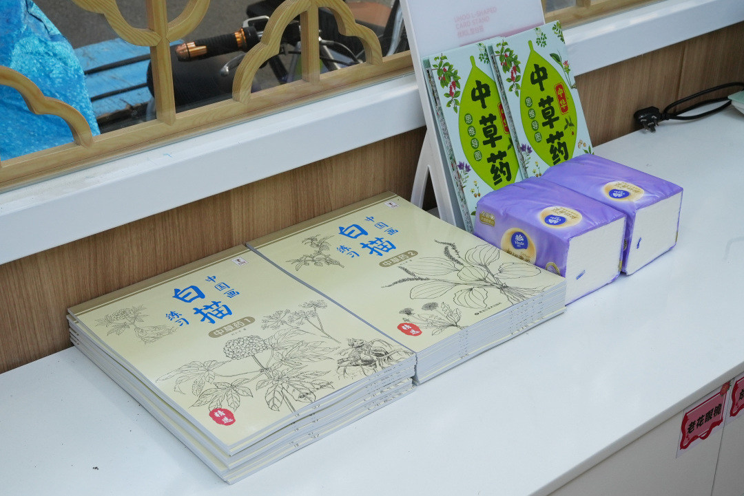 白色与木色为主色调的小屋,镂空木格窗,外墙上装饰当归、麦冬、茯苓等元素……清平中药材市场党群服务驿站古色古香、特色鲜明,走进里面可以看到桌椅、书架、雨伞、医药箱、微波炉、热水壶等,除基本功能设备外,还有中草药手册、印章打卡点等特色布置。