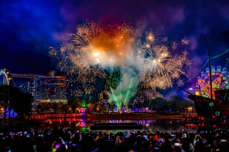 烟花象征着“辞旧迎新”。2023年12月23-24日,12月30日至2024年1月1日,广州融创乐园推出一年一度的新年主题烟花秀,每晚在喷泉广场上演,连续五天璀璨绽放。