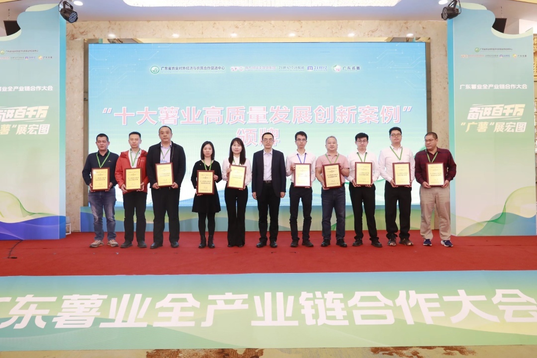 大会还公布了“十大薯业高质量发展创新案例”,分别是:广东省农业科学院作物研究所主导的“‘冬种马铃薯-鲜食玉米-中晚稻’三熟轮作高效栽培技术研发应用与推广”、广东省农业科学院蚕业与农产品加工研究所主导的“甘薯精深加工系列技术转化方案”、广东省农垦集团公司/广东一人一亩田网络科技有限公司主导的“薯业数字化基地共建案例”、雷州市那毛福平种养专业合作社主导的“那毛村助力百县千镇万村高质量发展”、湛江市遂溪县农业农村局主导的“‘稻稻薯’(早稻+晚稻+冬薯)高效产粮模式”、陆丰植物龙生态农业发展有限公司主导的“甘薯种苗脱毒技术的应用与推广”、深圳紫心种源生物科技有限公司主导的“‘产业+科技+金融’甘薯全产业链服务案例”、广州生长地农业科技有限公司主导的“红薯产业垂直服务平台建设与应用”、佛冈县宝运种养专业合作社主导的“区域公用品牌创新运营模式”以及汕尾市农业农村局主导的“‘汕尾粉签’速食加工与便携化应用”。这些创新案例为广东薯业高质量发展提供了可借鉴可复制的优秀模板,以“稻稻薯”高效产粮模式为例,该案例在实现农业产出效率大大提升的同时,还实现了薯业跨区域的“北薯南种”合作。