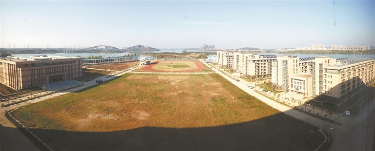 步行进入职业技能训练段感觉就像进入一所学校,目之所及的有综合教学楼、实作教学楼、综合实训场、中心绿地、体育运动场甚至学员和教工宿舍、餐厅等。