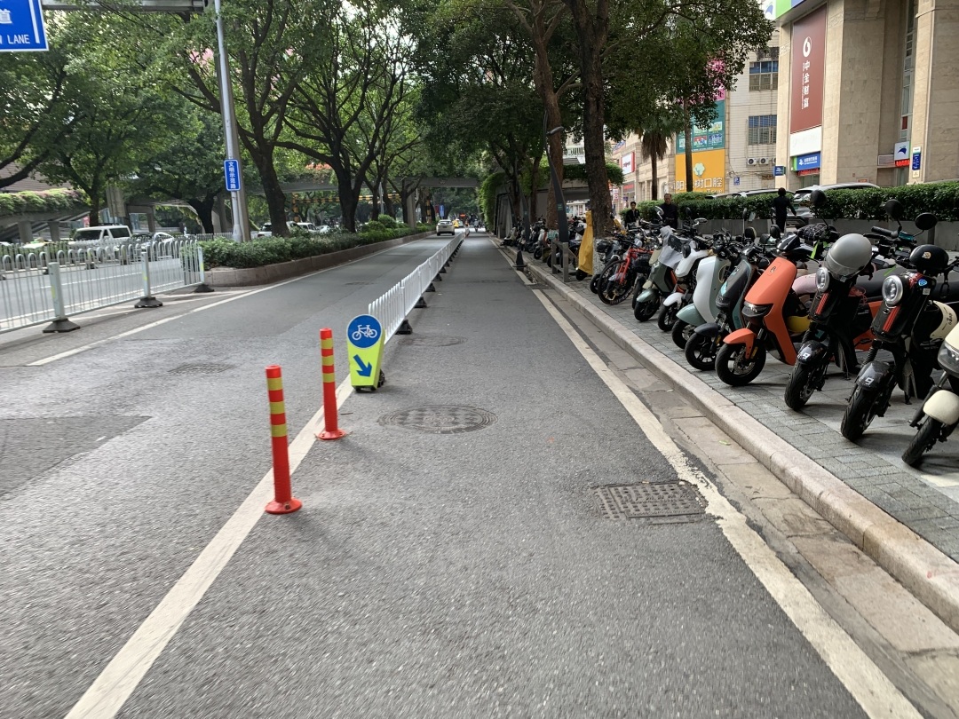 记者看到,环市路和中山路在近日都对非机动车道进行了维护,不仅翻新了非机动车道的地面标示,还在部分路段加装了护栏,分隔了机动车和非机动车的通行,更好地保护非机动车安全。