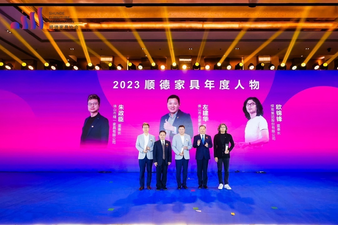 就职典礼上还给予三位顺德家具行业领头人颁发了“2023顺德家具年度人物”奖项,分别是匠心传承,经济革新代表,佛山市志豪家具有限公司 董事长
