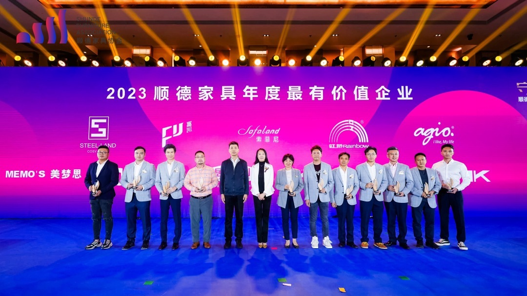 作为顺德家协会的活动盛事,就职典礼上表彰了一批行业优秀企业,共有包括广东省斯帝罗兰家居有限公司、广东韦富家居科技股份有限公司、佛山市美梦思睡眠科技有限公司、佛山市顺德区锡山家居科技有限公司、广东居家每刻家居科技有限公司、佛山市虹桥家具有限公司、佛山市富莱斯家具有限公司、佛山市前进家具有限公司、广东志达家居实业有限公司、佛山市汉格家具有限公司、广东顺德富凯家具有限公司十一家企业,获颁“2023顺德家具年度最有价值企业”。