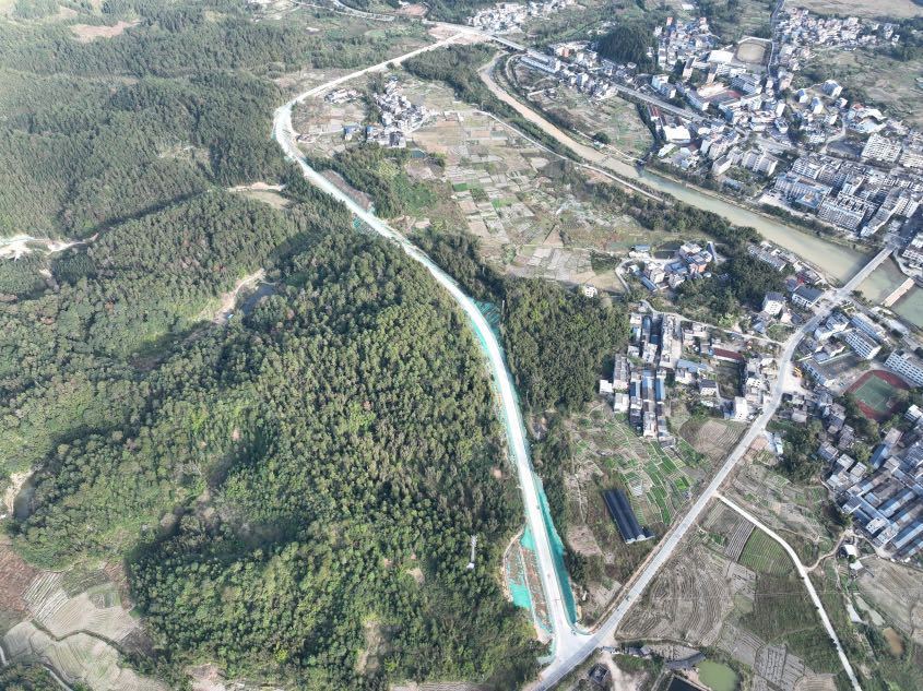 据介绍,吕田连接线是广东省连平(赣粤界)至从化公路项目建设尾工工程,起于大广高速吕田收费站出口往吕田镇墟方向3.5公里处的县道X262,跨海螺河支流交于国道G105南行K2440+900,全长1.46km,是县道 X262 与国道 G105 的连接通道,也是国家交通大动脉大广高速与川流不息的国道G105吕田区域最便捷的快速中转通道。连接线全线采用双向两车道三级公路建设标准,设计时速 40km。