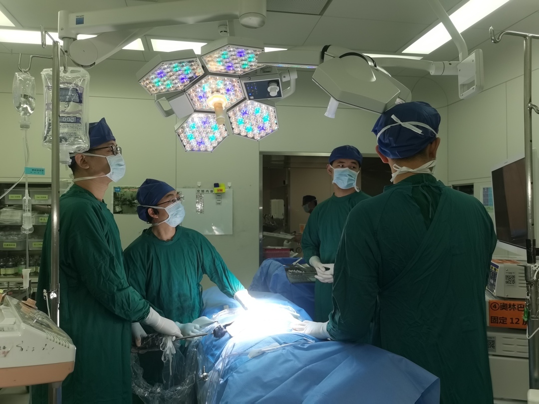 根据梁婆婆的病情,需要尽快进行手术,但考虑到梁婆婆96岁高龄,同时合并有高血压,手术并不是一件易事。“如果不及时做手术,这个肿物相当于‘定时炸弹’。同时我们也在想患者是否能耐受手术、术中会不会心脏骤停、术后会不会恢复不过来……考虑到这些风险,我们请来了麻醉科、呼吸科团队来进行多学科会诊。”经过充分讨论,医护团队决定用微创的方式,让巨大腹壁疝疝内容物,即一部分胃、大肠和大网膜回到原本的位置,将腹壁疝缝合后再用补片做多一层保障,防止腹壁疝疝内容物再“跑”出来。