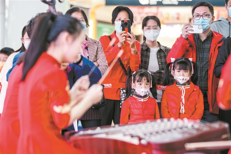 过年期间,惠民演出走进地铁站。广州日报全媒体记者骆昌威 摄