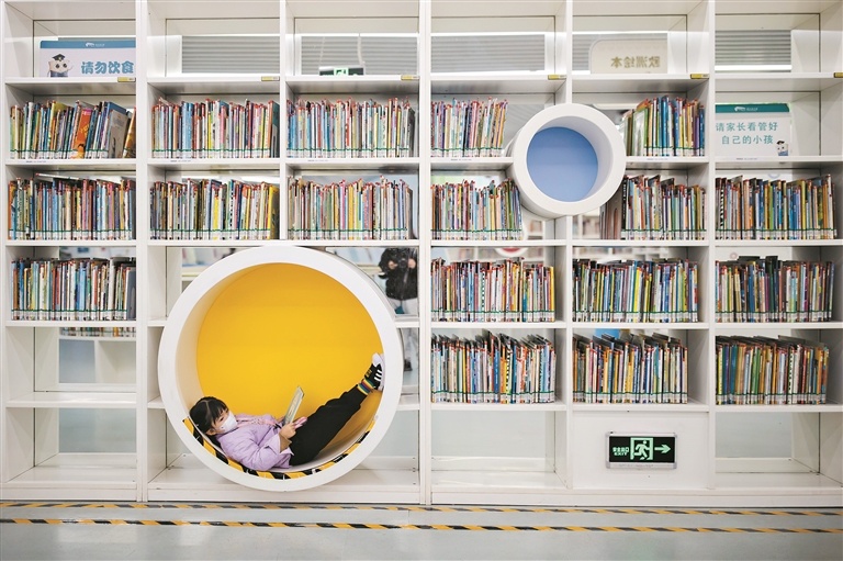 在广州图书馆,家长和孩子一起乐享阅读时光。广州日报全媒体记者廖雪明 摄