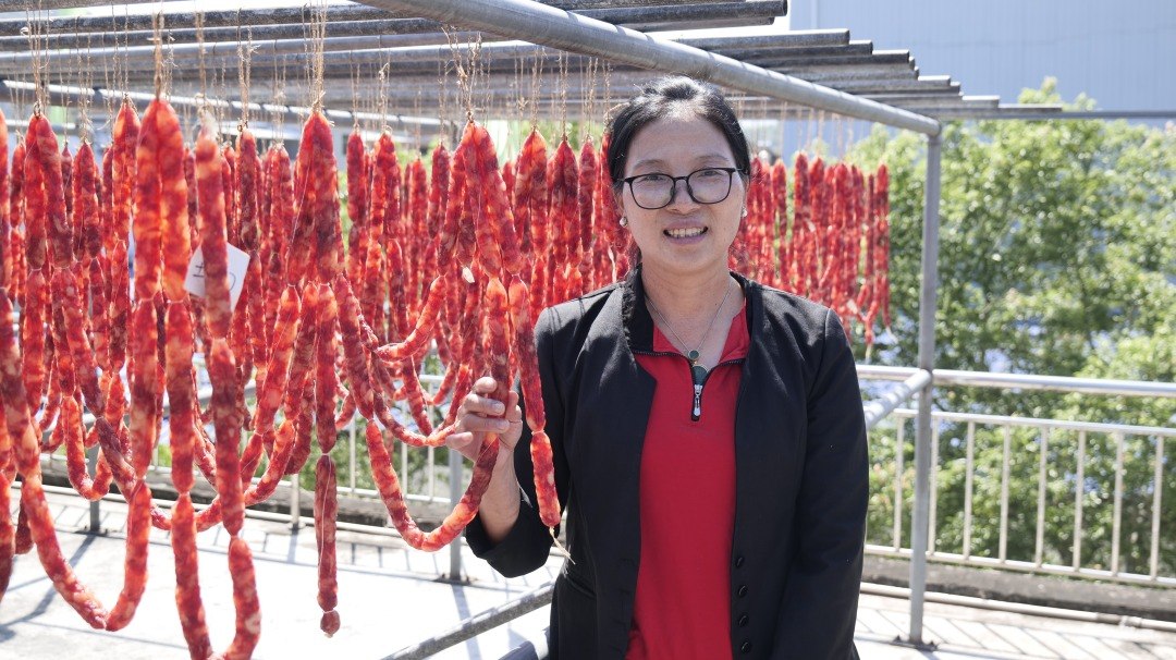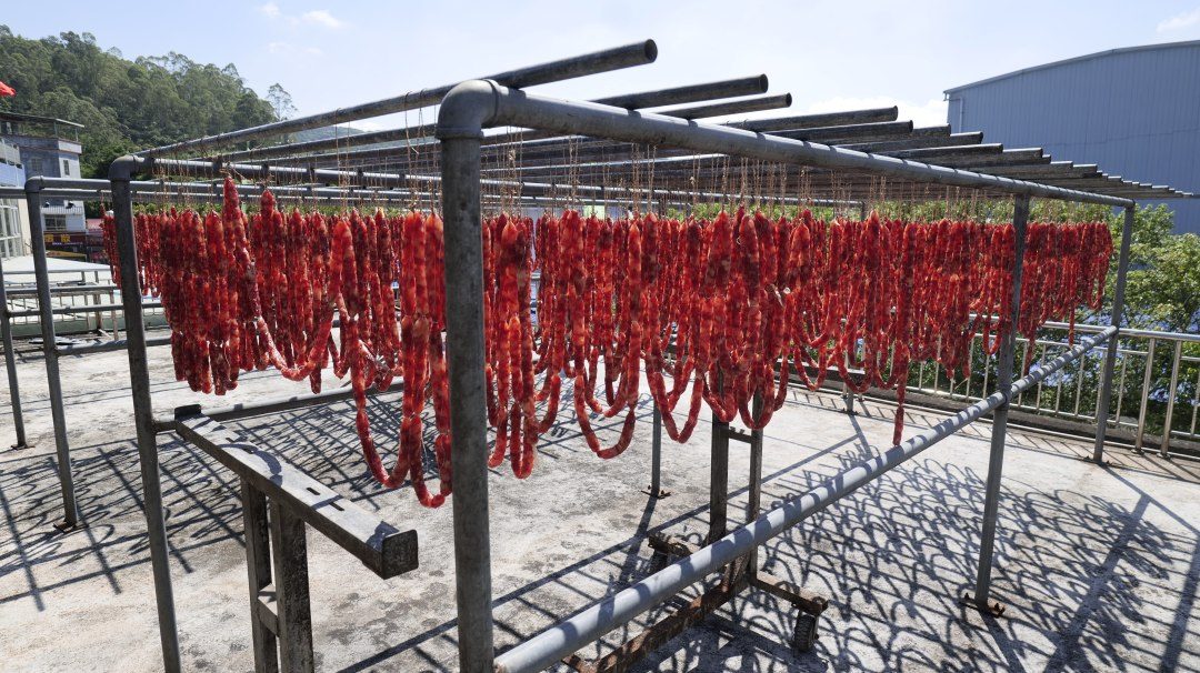 传承王家祖传配方的同时,张秋霞也从口感和色泽上不断改进。比如,生猪肉手工切粒后拌料腌制,“以前没有腌制这道工序,加上以后口感会更脆。”张秋霞介绍道,又比如,在灌好腊肠后立即用风机风干,这样可以让腊味的色泽更接近猪肉的原色。张秋霞还把增城特色的迟菜心加入腊味,推出迟菜心腊肠。“蔬菜脱水后加到原料中,既保留了蔬菜的味道又解决了生鲜蔬菜的保质难题,而且吃起来比较清爽,不容易油腻。”