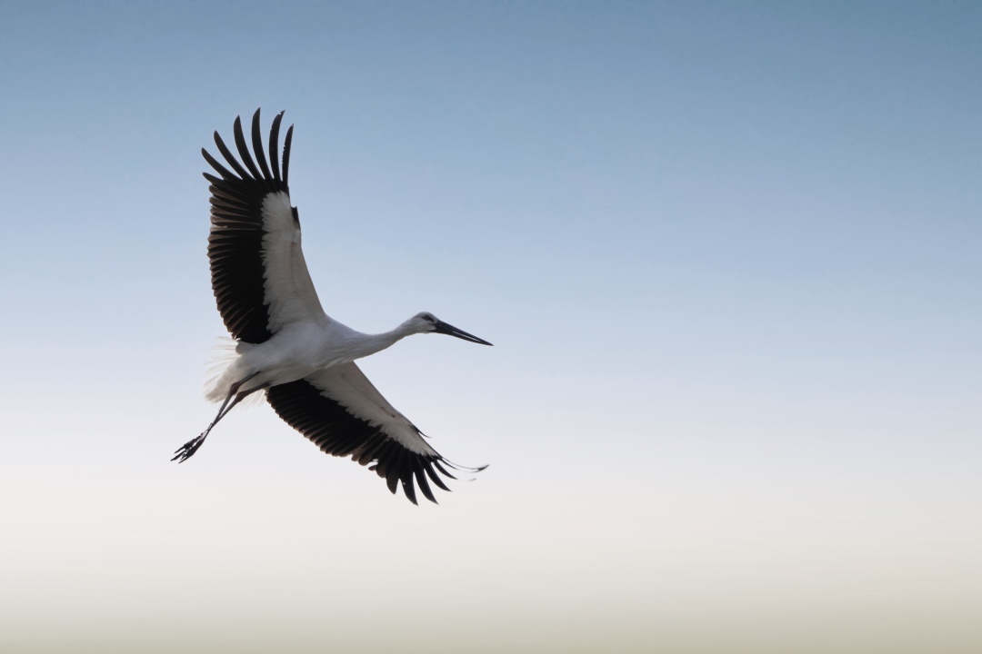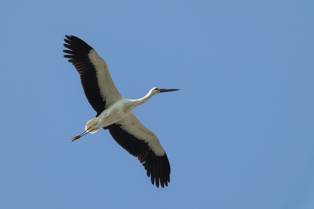 东方白鹳翱翔天际