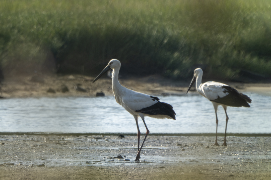 东方白鹳比翼双飞