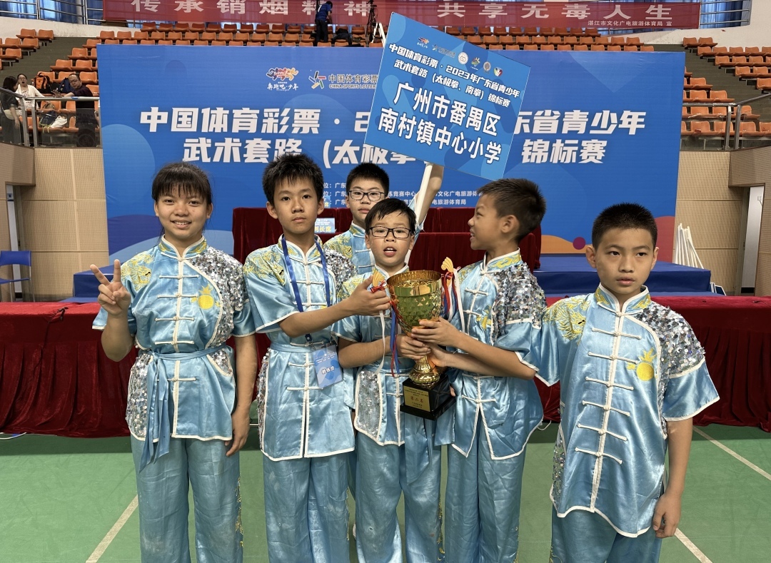 近日,2023年广东省青少年武术套路(太极拳、南拳)锦标赛在湛江市麻章区体育中心体育馆落下帷幕。广州市番禺区南村镇中心小学武术队勇夺5金,并以329分荣获团体总分第二名。比赛由广东省体育局主办,广东省社会体育和训练竞赛中心、湛江市文广旅体局承办。