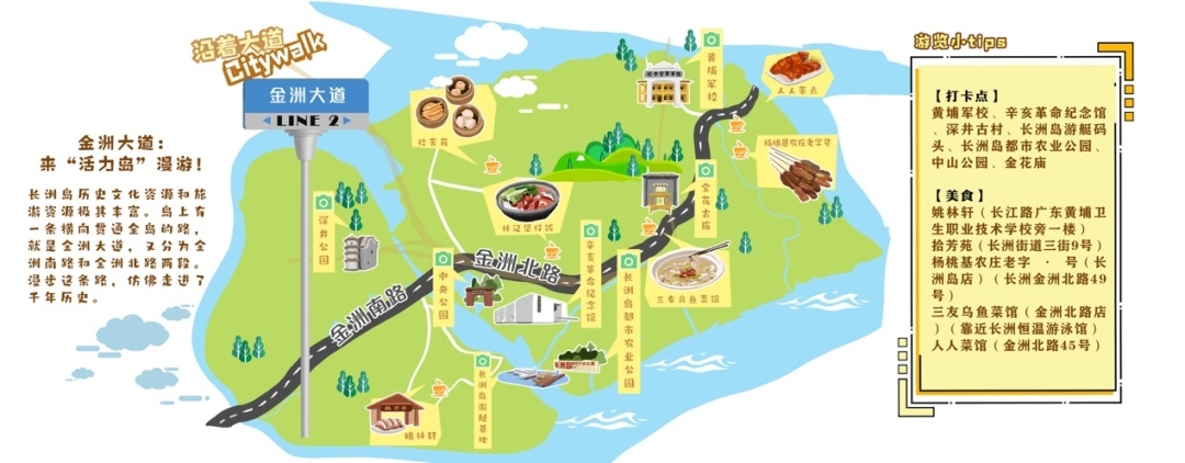 作为广州26片历史文化街区之一,长洲岛历史文化资源和旅游资源极其丰富。岛上有一条横向贯通全岛的路,就是金洲大道,漫步这条路,仿佛走进了千年历史,在历史与现实中穿梭,品一品驰名中外的深井烧鹅,身临其境体验悠闲生活,傍晚观赏江面落日,岂不快哉!