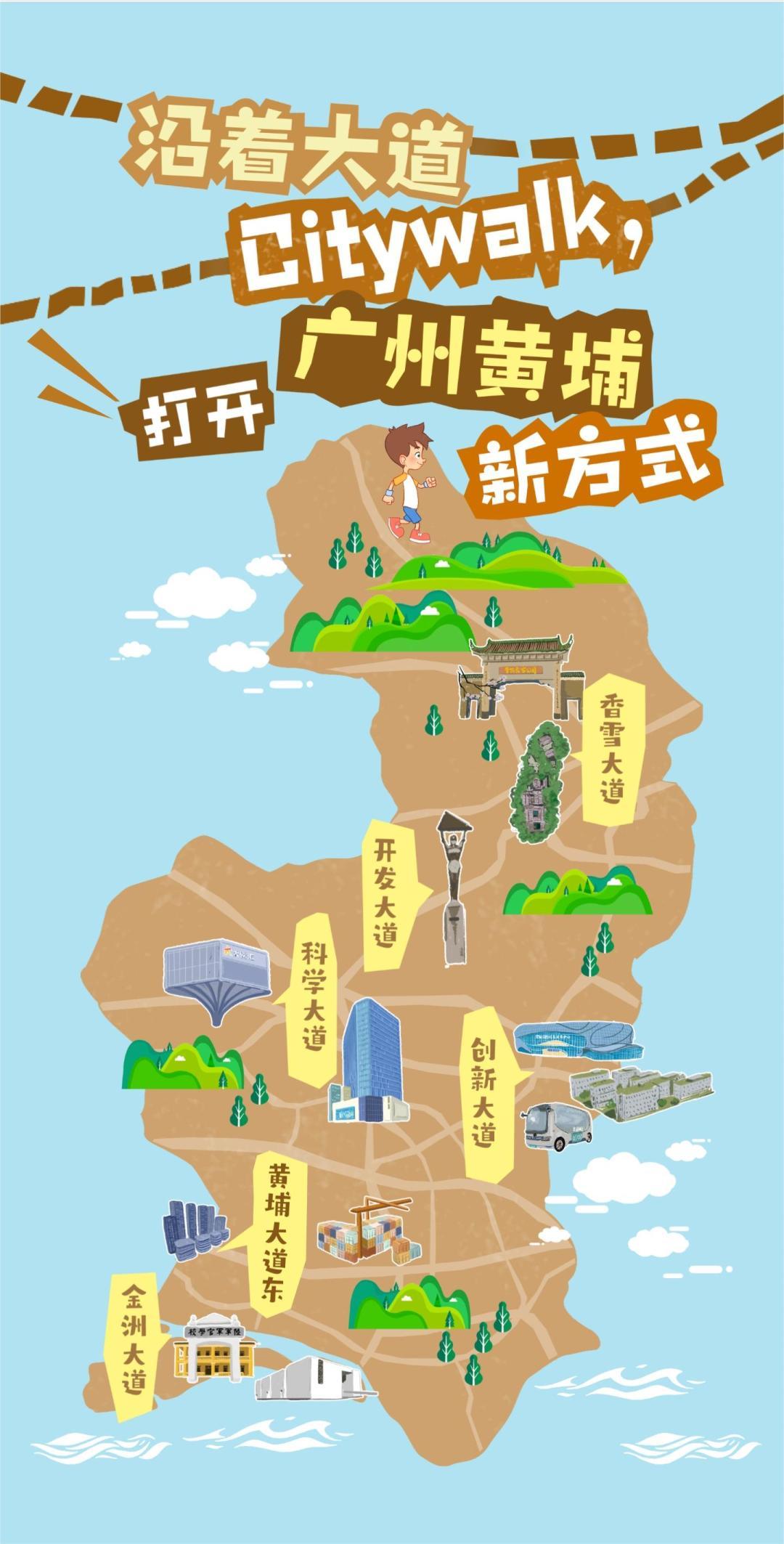 从南到北,由西往东,一条条大道纵横交错,见证了黄埔的繁荣与变迁。今年的“幸福黄埔”系列城市品牌传播活动主题为“大道之行 幸福黄埔”。广州开发区、黄埔区正式发布以H5呈现的漫游黄埔“大道·黄埔”手绘地图,同时举办City walk“打卡”活动,邀请广大市民参与“打卡游”,深度体验黄埔深厚的历史文化底蕴、科技创新实力和城市生活烟火气。