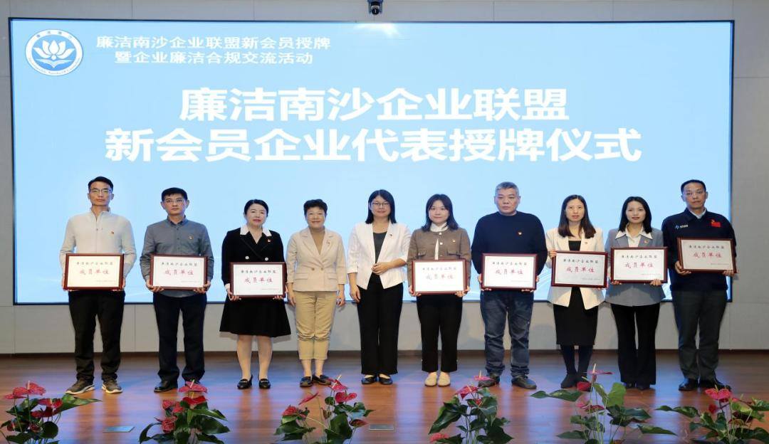 活动通报了2023年廉洁南沙企业联盟工作情况,并为61家新加入联盟的会员企业授牌。目前,联盟共有会员企业301家,以非公有制企业为主,涵盖航运、金融、科技、制造等各行各业,影响力不断提升,队伍不断壮大。