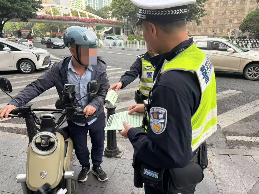 “如果距离近的话,请您推行经过,远的话请绕行中山路通行”……在东风路陵园西路路口,数十名电动车驾驶人被执勤交警相继拦下后,接受了宣传劝导。