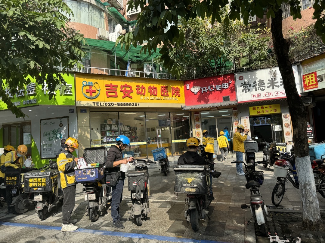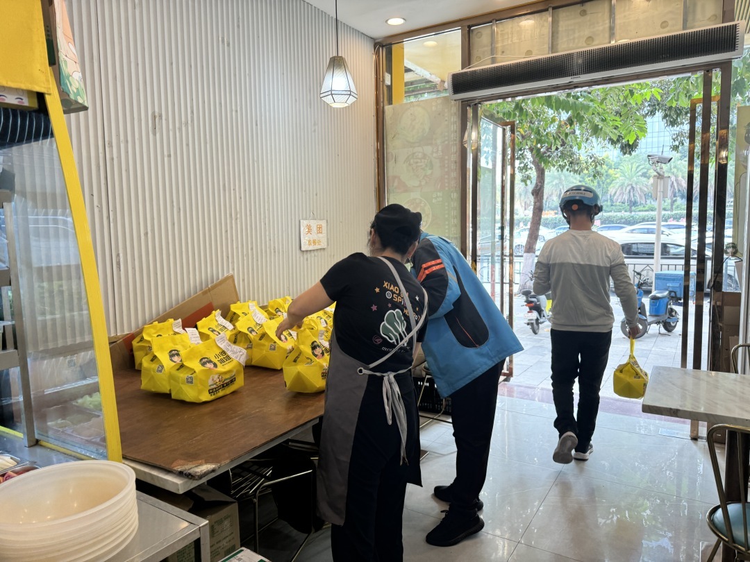 中午饭点,记者在黄埔大道西一家麻辣烫店看到店门口摆满一排等待配送的外卖,外卖小哥火急火燎地拿着外卖配送。该店的服务员告诉记者,工作日店里外卖订单特别多,外卖生意火热。“限行让外卖小哥配送时间变久了,店里等待配送的外卖也多了起来。”她说,“外卖员着急配送,拿错外卖的情况也时有发生。”