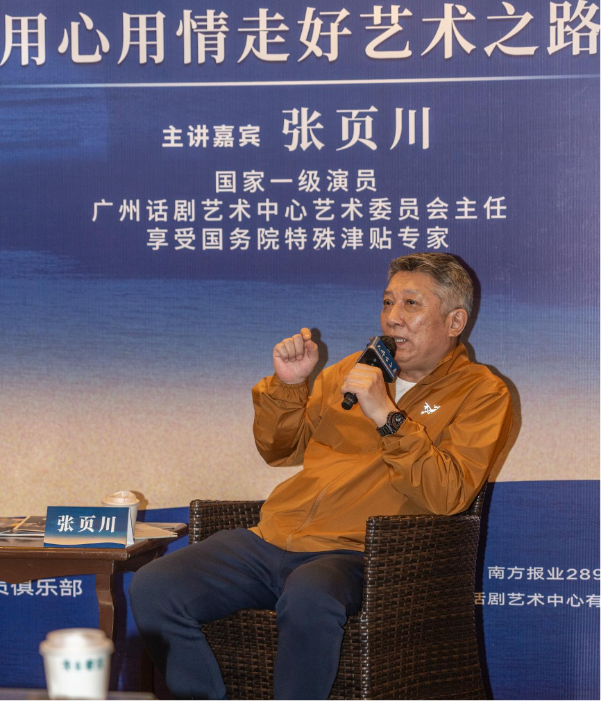 对表演的精益求精还体现在他与青年演员的相处方式上。张页川说:“年轻演员表演的时候,我会观察他们。这一代年轻演员,他们的见识和视野特别宽广,常常能带来一些惊喜。在他们身上我也学到了很多。”活动现场,搭档们还争相发言,分享了自己和张页川的相处瞬间。国家一级演员、广州话剧艺术中心有限公司副总经理孙亚军更是用“亦师亦友”概括张页川在他心目中的形象。