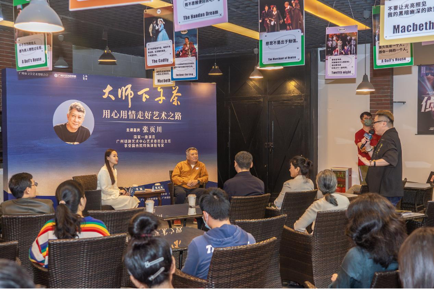 12月14日下午,2023年广州文艺市民空间品牌活动“大师下午茶”第四场在广州话剧艺术中心举办。活动邀请国家一级演员、中国戏剧“梅花奖”获得者、享受国务院政府特殊津贴专家张页川以“用心用情走好艺术之路”为主题,分享了个人从艺经历和艺术心得。活动现场氛围热烈,嘉宾的生动分享获得了观众们不断的掌声。