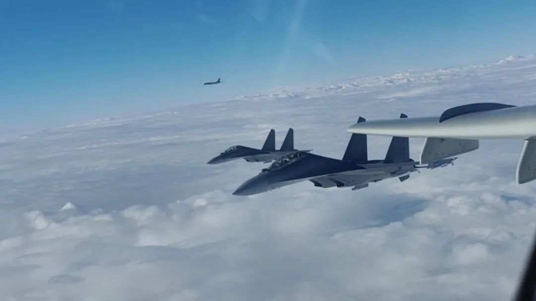中国轰-6轰炸机和俄罗斯图-95轰炸机在中国空军歼-16和俄罗斯空天军苏-35等战机的护航下,在日本海和东海地区完成联合空中巡航。