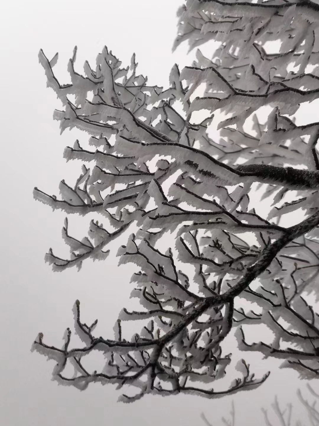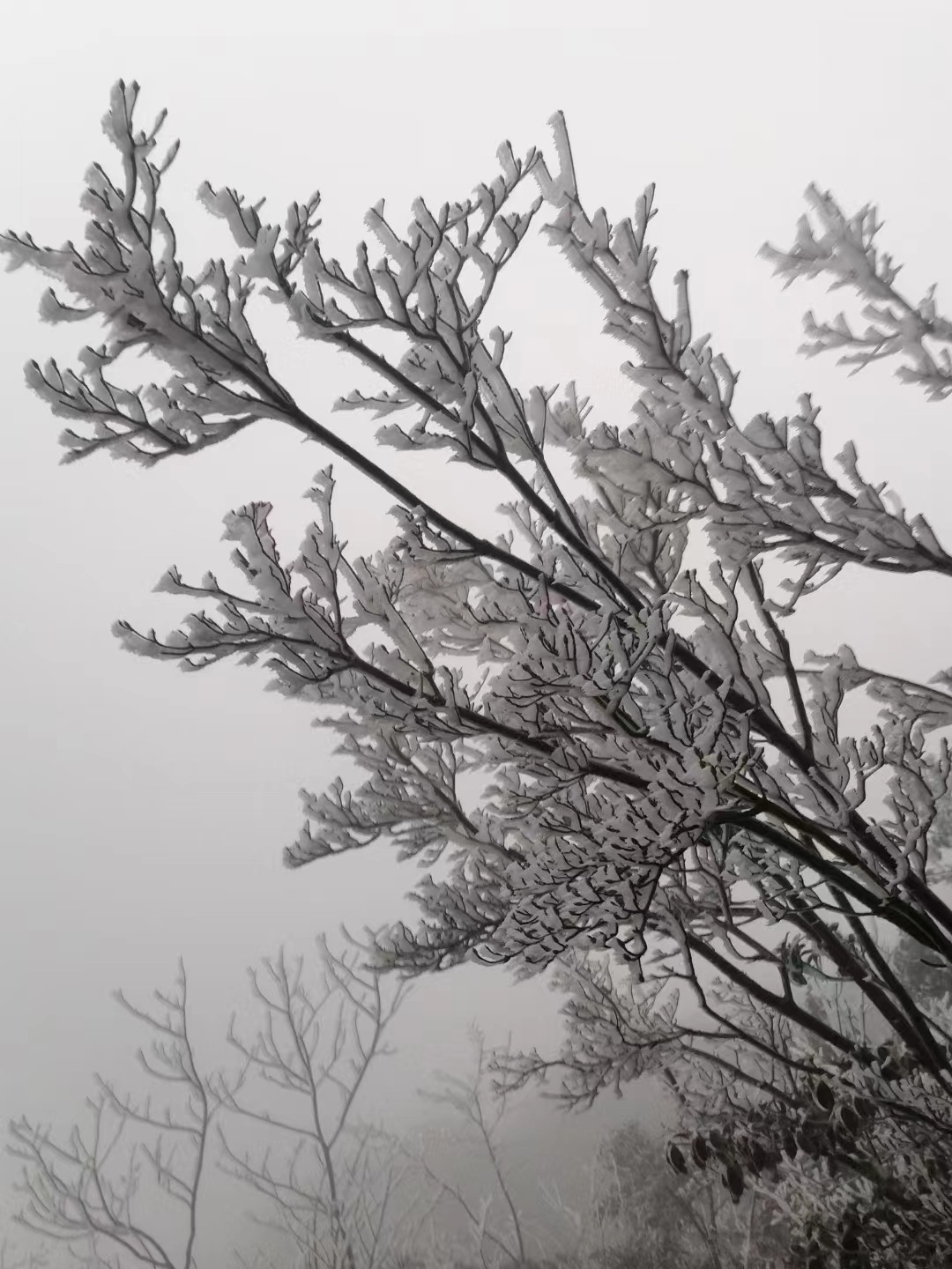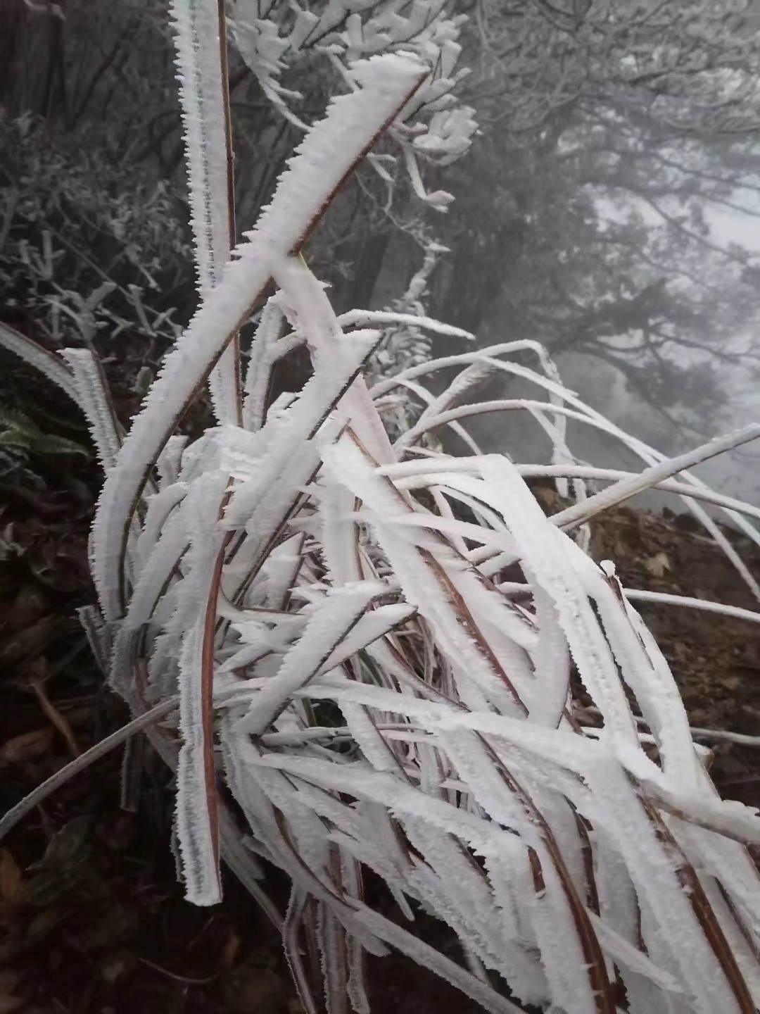 一夜北风呼啸,地处湘粤交界的韶关乐昌市坪石镇天堂村马王殿今晨青山白头、漫野玉树琼花,呈现出一种被凝固的静美。