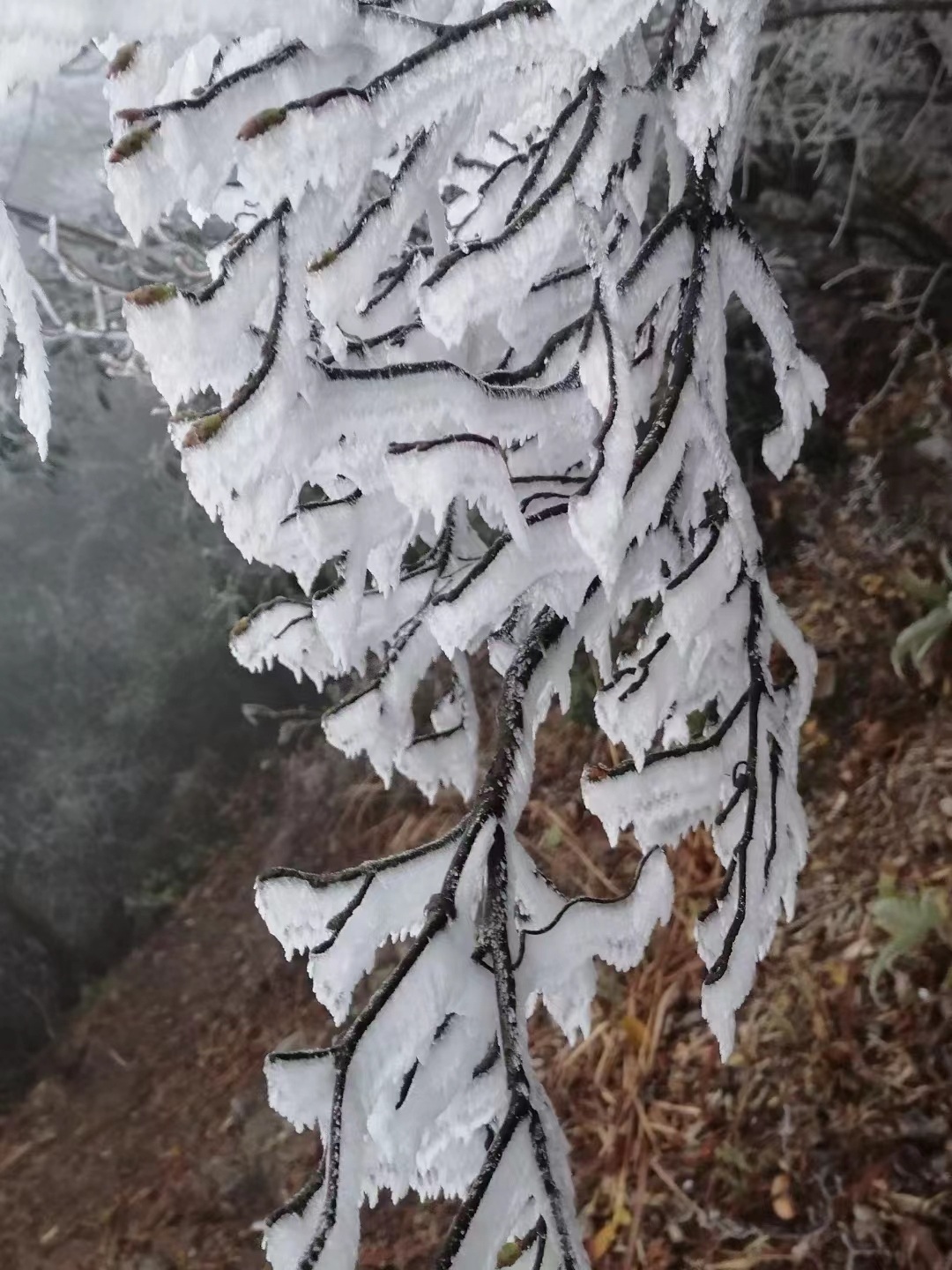 今晨早起的市民邓景元惊喜发现,当天清晨马王山中寒雾飘忽,林木山头在雾中若隐若现,水汽萦绕在枝叶上凝结成雾凇、冰挂,将山林幻化成“千树万树梨花开”的“雪国”。漫步山中,寒雾萦绕群山,远处隐约空蒙,近处清明沉静,犹如步入一个妖娆多姿的童话世界。