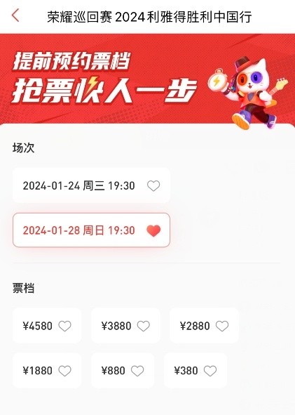 目前,某购票平台已推出购票页面,页面显示票价分6档,最低380元最高4580元,开票时间暂未公布。