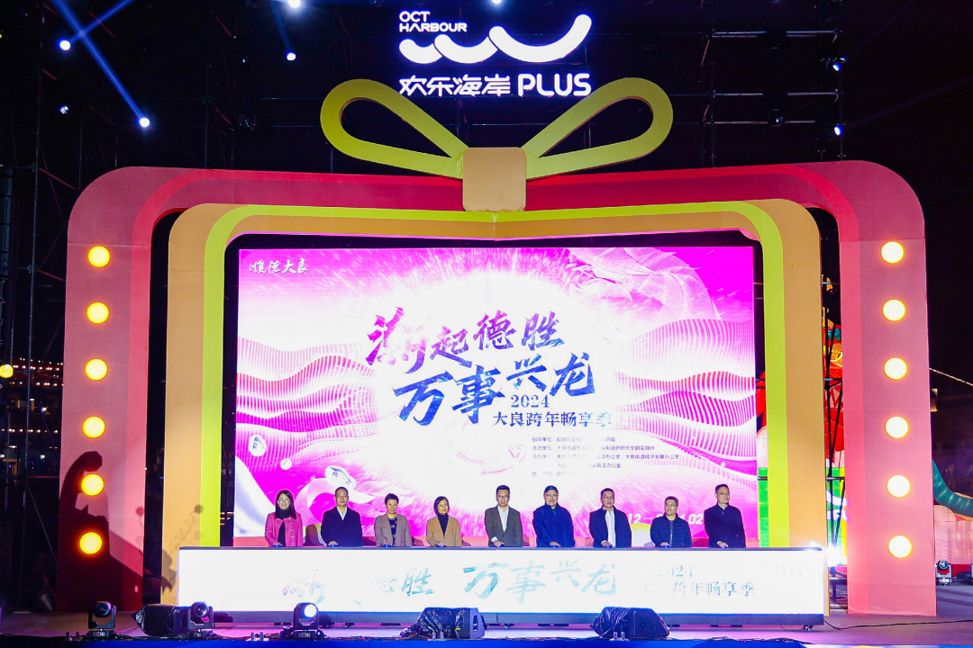 12月16日晚,“潮起德胜 万事兴‘龙’”2024顺德大良跨年畅享季在欢乐海岸PLUS启动。现场,大良街道“潮起德胜”系列活动正式开启,“潮乐酷玩”“潮炫城市”“潮涌百业”“潮趣新年”四大篇章同步发布。