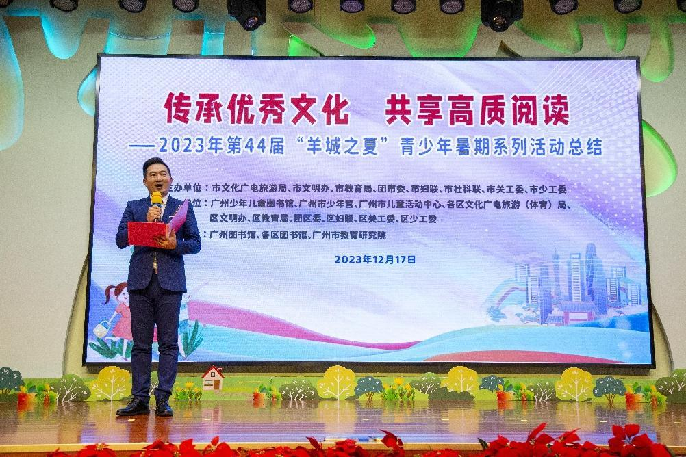 12月17日上午,寒冷的天气挡不住羊城青少年的热情。第44届“羊城之夏”青少年暑期系列活动总结会在广州少年儿童图书馆三楼报告厅举行,活动由市文化广电旅游局、市文明办、市教育局、团市委、市妇联、市社科联、市关工委、市少工委联合主办,广州少年儿童图书馆主要承办。各主办、承办、协办单位领导、“广州青少年阅读指导专家委员会”专家代表、图书馆界代表及少儿读者共约200人齐聚一堂,共同见证2023年“羊城之夏”青少年暑期系列活动结出的丰硕成果。