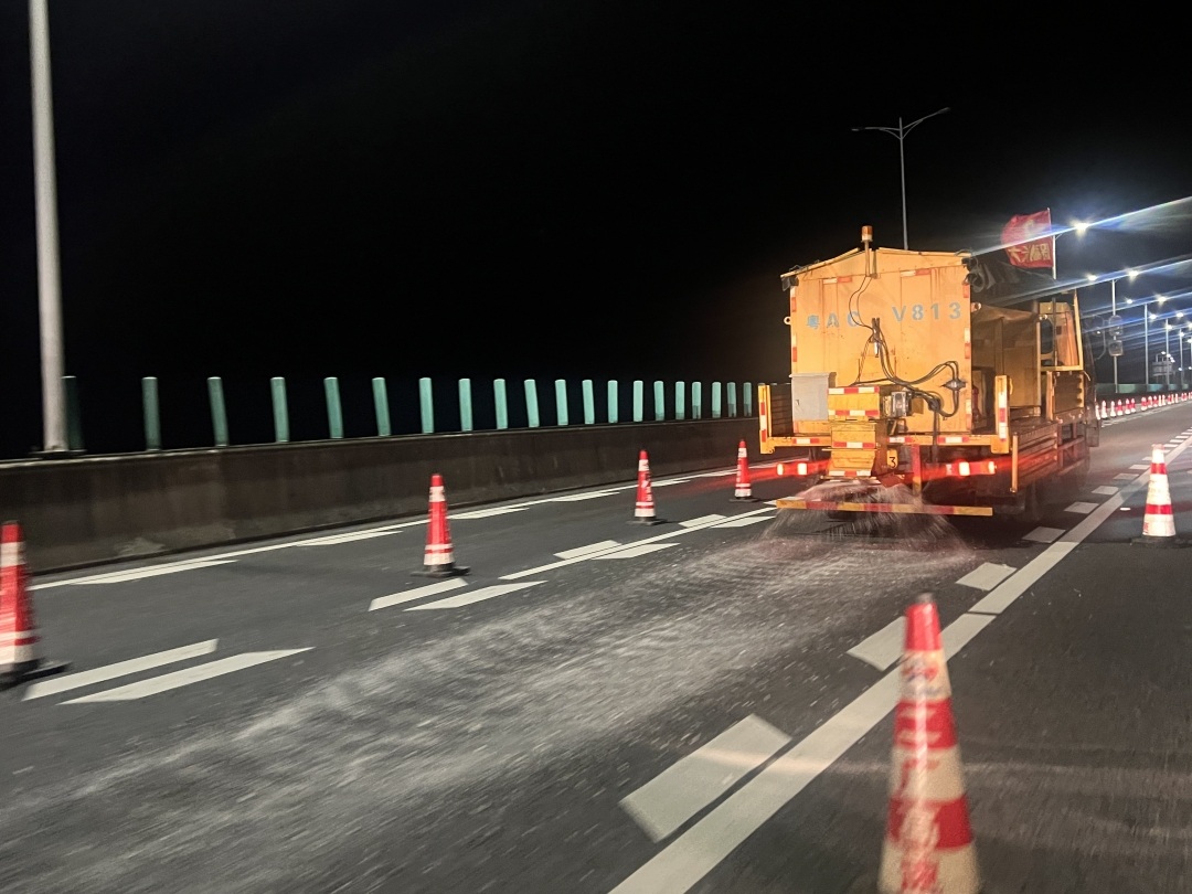 为预防道路结冰,17日凌晨2时至4时,二广高速路政、养护会同高速交警,在九嶷山隧道至云雾大桥路段双向20公里,累计实施预防性撒布融雪剂1次,全力保障过往司乘的行车安全。