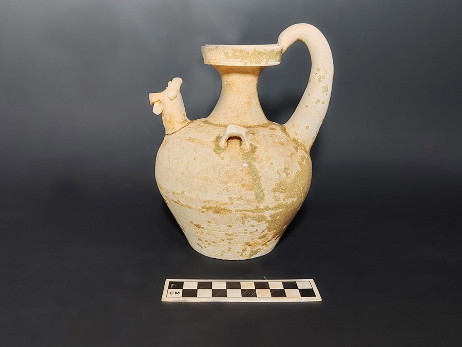 This photo taken on Dec. 14, 2023 shows a pot found from an ancient tomb in Guangzhou, south China's Guangdong Province. (Guangzhou Municipal Institute of Cultural Heritage and Archaeology/Handout via Xinhua)