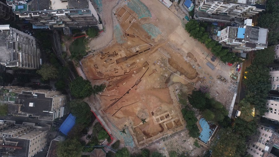 This photo taken on Dec. 14, 2023 shows the excavation site of some ancient tombs in Guangzhou, south China's Guangdong Province. (Guangzhou Municipal Institute of Cultural Heritage and Archaeology/Handout via Xinhua)