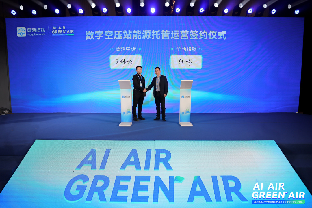 蘑菇中诺还与华西特钢举行“数字空压站能源托管运营签约”仪式。作为第一代民营企业的翘楚,华西特钢通过新团队实事求是的管理方式,在短短六个月中,产能提升了30%,销售单价重回合理区间,扭亏为盈。蘑菇中诺的全流程数字化能源托管服务将为华西特钢带来安全供能、无人值守、节能降碳多重价值,助力华西特钢打造业务新增长点。