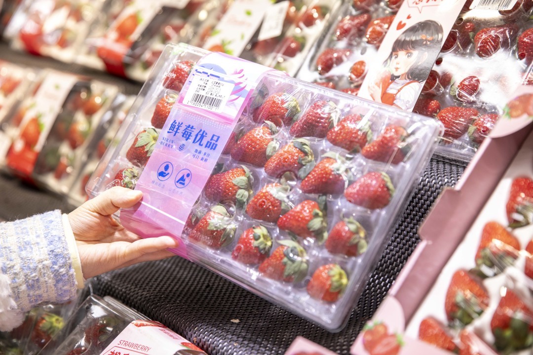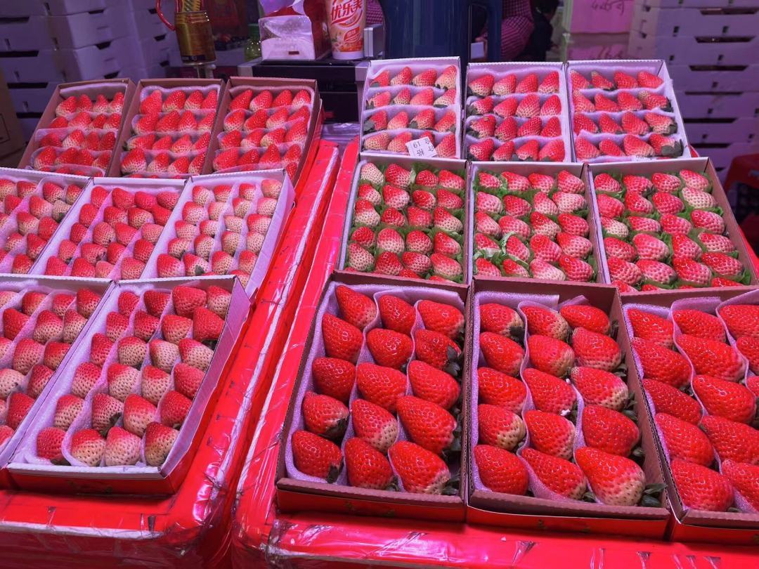 黄灿荣还表示,今年安徽草莓很受市场欢迎。安徽和辽宁丹东地区都主打红颜草莓,但今年安徽地区草莓扩产,加上品质也提升了不少,两地生产的草莓口感差异很小,但安徽草莓要便宜一点,所以更有市场竞争力。