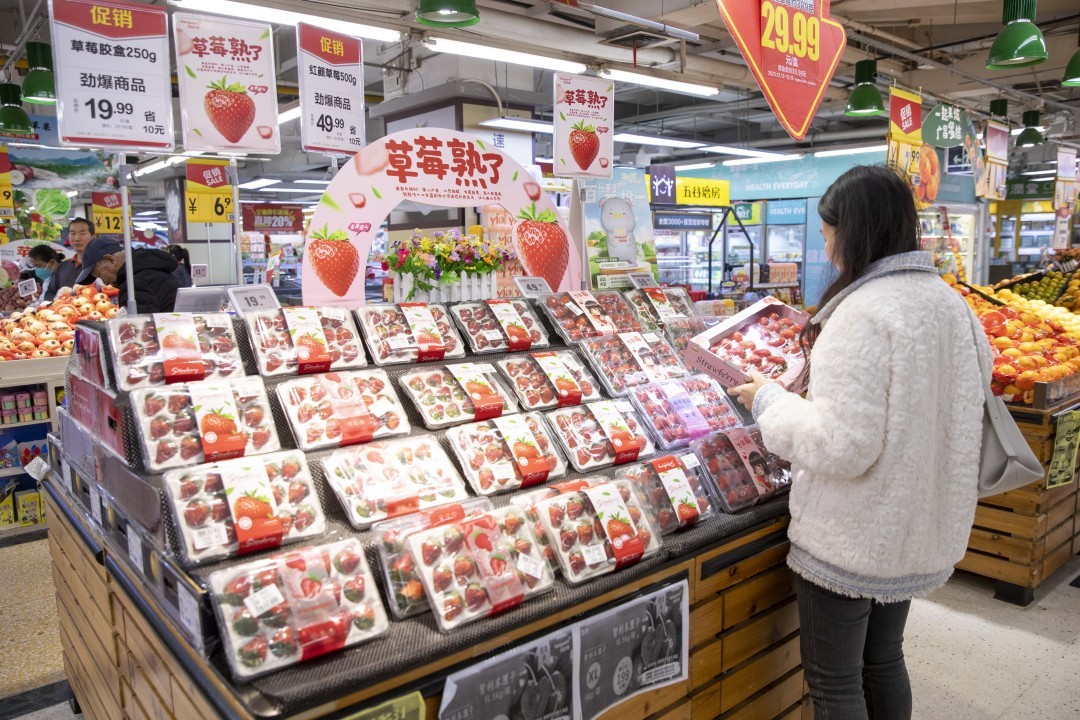 “这是丹东红颜草莓,一箱70元,有24颗。如果按斤算,大约41元一斤。”另外一家商户的老板黄灿荣告诉记者。今年草莓刚上市不久,价格跟去年同期差不多,按照往年的情况来看,草莓价格后续会下降,尤其在春节后会便宜很多。