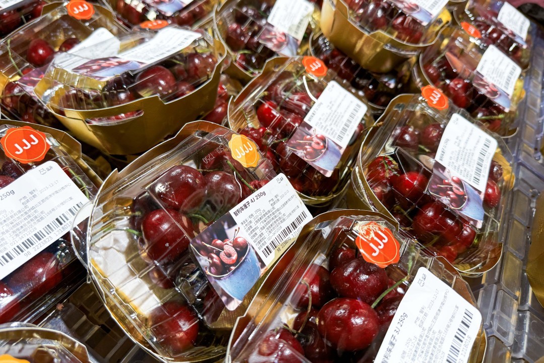 在车厘子区域,记者了解到目前销售的智利车厘子只有250克一盒的小包装,价格约为40元一盒。“如果购买量大,需要在线上提前订购。”丁正雄说。