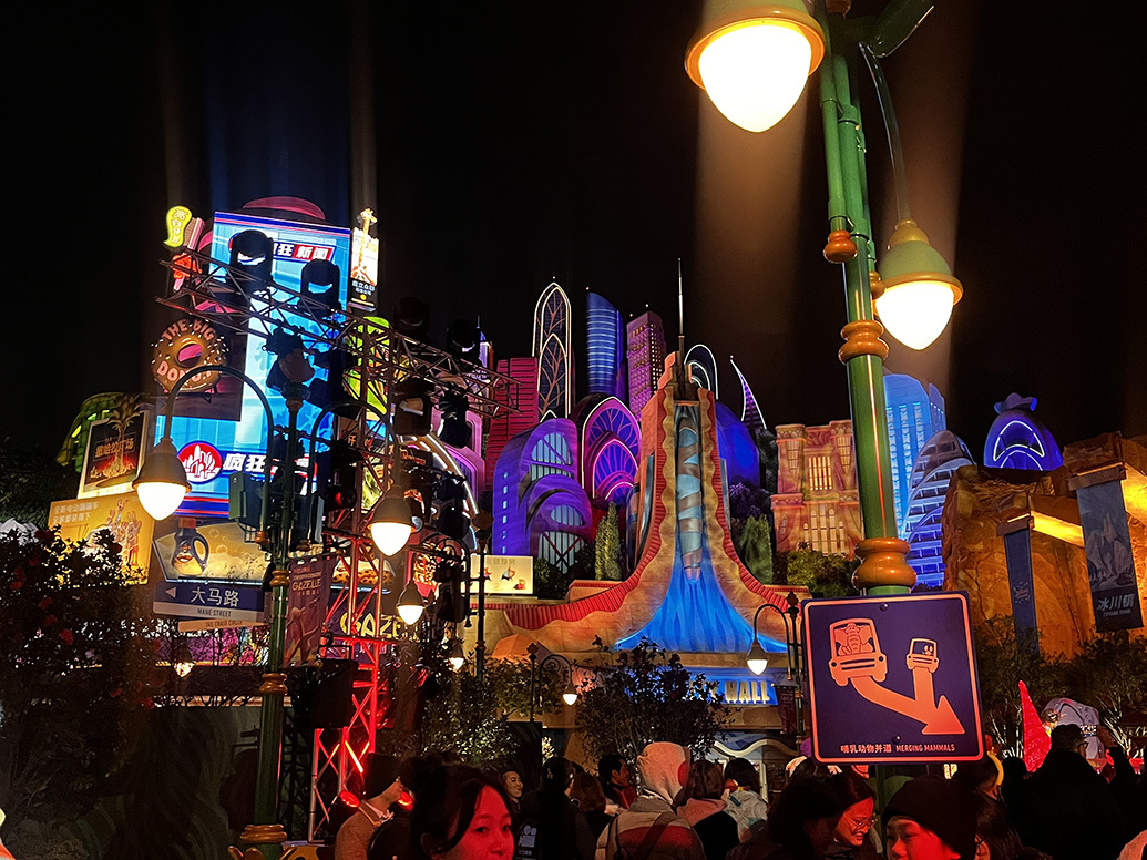 疯狂动物城主题园区夜景。 澎湃新闻记者 邹佳雯 图