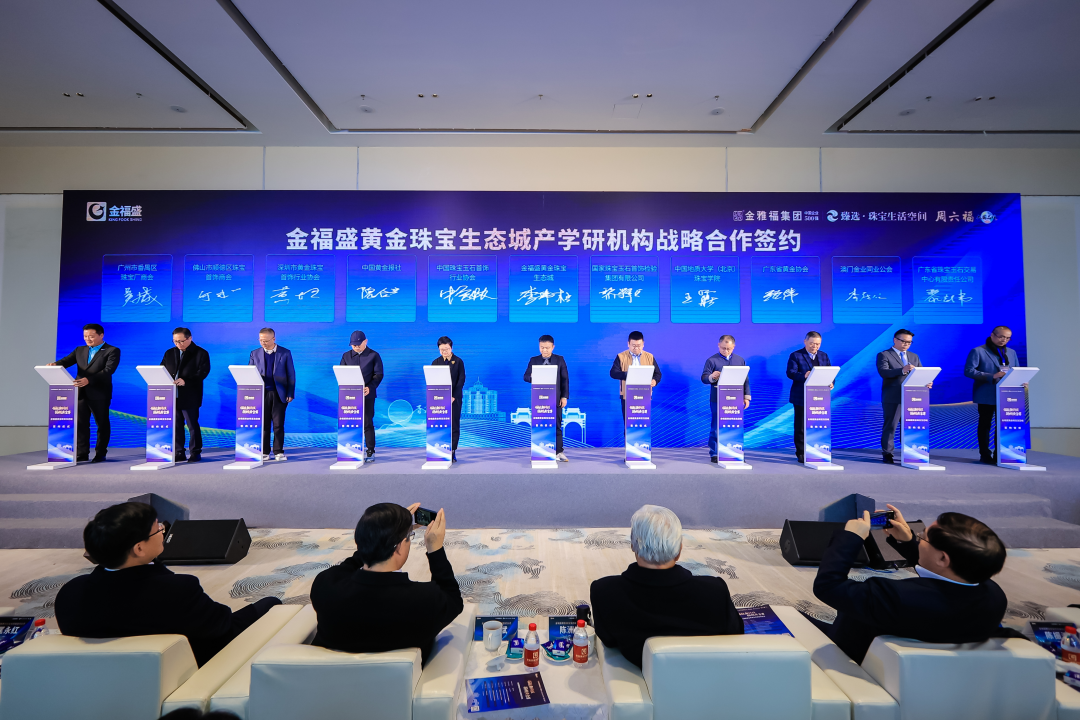 金福盛副董事长、周六福董事长李伟柱作为代表参与产学研环节签约。中国珠宝玉石首饰行业协会、国家珠宝玉石首饰检验集团、中国黄金报社、中国地质大学(北京)珠宝学院等产学研单位与金福盛签约共建产学研高地,加速产学研一体化、研究成果转化。