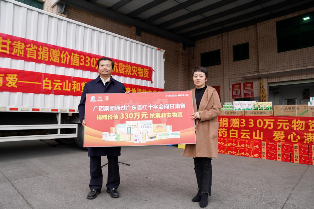 甘肃突发地震灾情牵动着广药集团全体员工的心。天灾过后的卫生健康保障十分关键。12月19日,广药集团携白云山、康美药业紧急组织救灾物资,于当日下午通过广东省红十字会向甘肃省捐赠现金和救灾物资,共计330万元,用于受灾群众健康和生活保障。广东省红十字会副会长杨波,广药集团党委书记、董事长李楚源,广药集团董事、工会主席李锦云出席捐赠仪式。