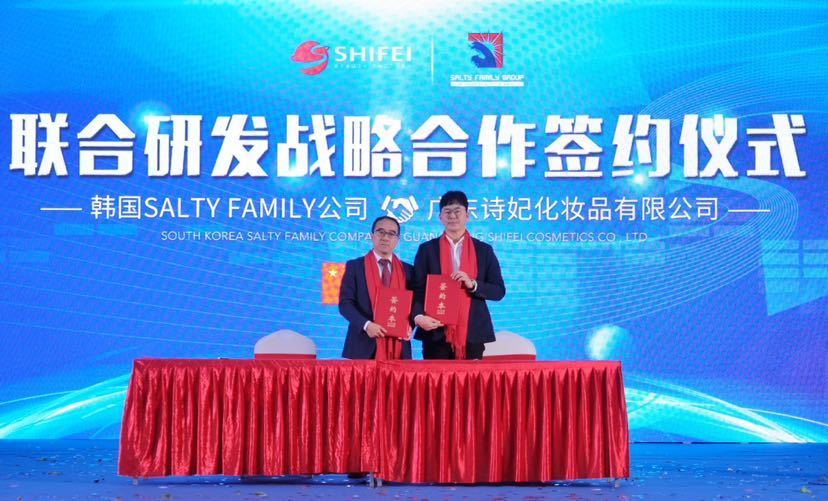 据悉,诗妃在技术和原料上持续不断探索和创新。在当天的开业仪式上,诗妃分别与白云美湾药妍国际化妆品研究院、韩国Salty Family Group签订战略合作协议,未来将在技术研发方面进行深度合作,将优质的“中国配方”推向市场、推向世界,同时借助国际技术加持,为全球客户提供更具特色的产品。