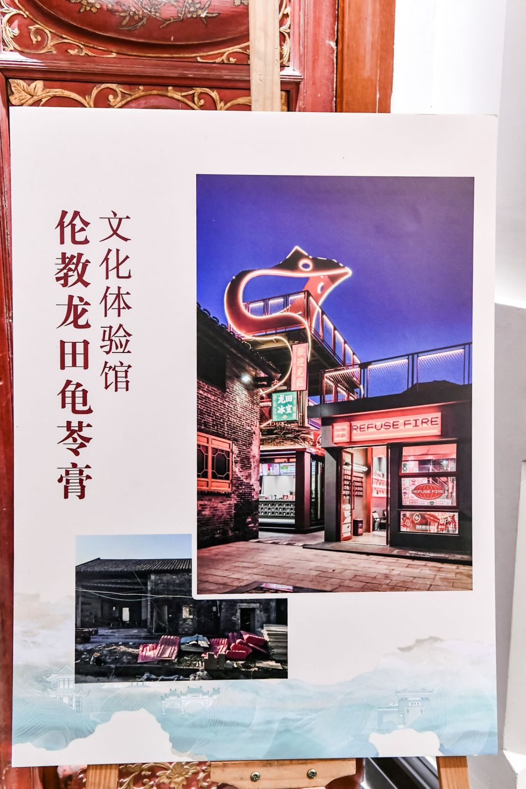 项目位于伦教羊额村,临近佛山市级文物“鸣石花园”。项目占地约900㎡,由佛山市龙田餐饮管理有限公司将9间富有岭南特色的古旧青砖瓦房修缮活化而成。依托顺德区级非遗项目——龟苓膏制作技艺,展示其历史、中草药和龟知识科普、制作体验及新派龟苓膏茶饮体验等。