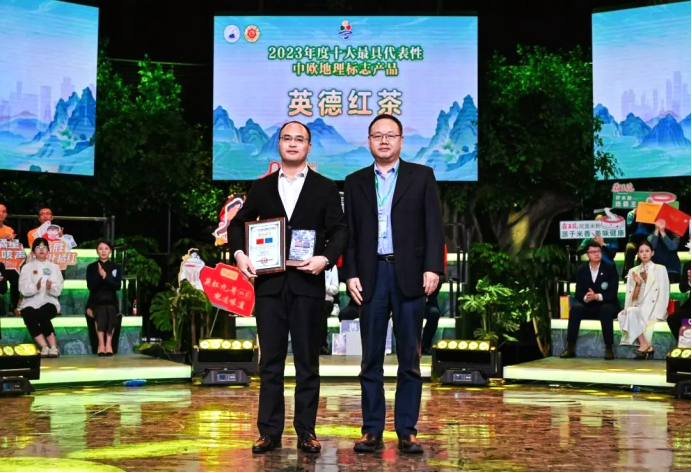 近日,2023年“粤地优品”广东高品质地理标志评选活动现场评选暨颁奖仪式在广州举行。在颁奖仪式上,广州商标审查协作中心(广东省知识产权开发与服务中心)负责人为英德颁发了地理标志产品“英德红茶”荣获“2023年度十大最具代表性中欧地理标志产品”荣誉牌匾和证书。